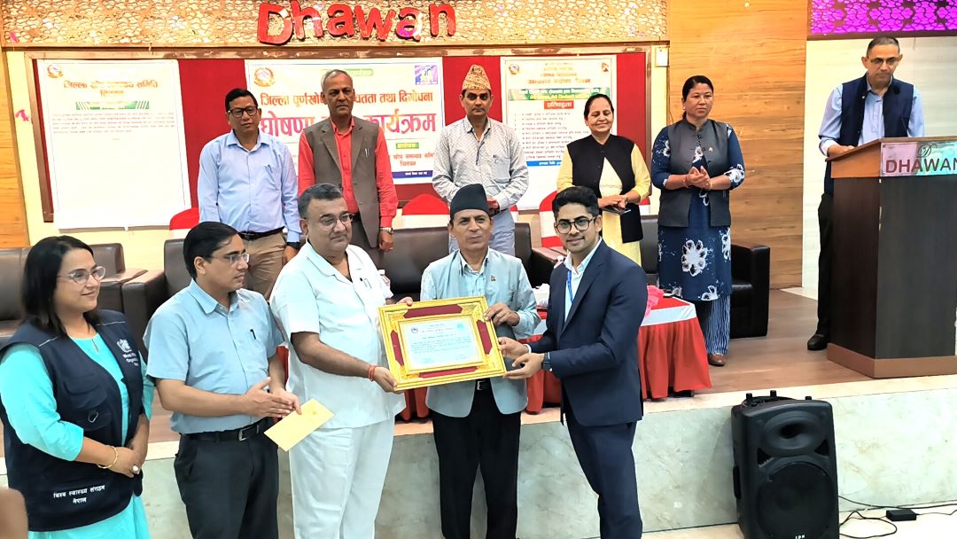चितवन, असार २१ । तस्विर कोमल चन्द्र भगत । चितवनलाई लगातार दोस्रोपटक पूर्णखोप सुनिश्चितता तथा दिगोपन जिल्ला घोषणा गरिएको छ । आज (शनिबार) एक कार्यक्रमका बीच बागमती प्रदेश खोप समन्वय समितिले चितवनलाई पूर्णखोप सुनिश्चितता तथा दिगोपन जिल्ला घोषणा गर्दै प्रमाणपत्र प्रदान गरेको छ । बागमती प्रदेश खोप समन्वय समितिका सदस्य सचिव डा.नरेन्द्र कुमार झाले जिल्ला खोप समन्वय समिति चितवनका संयोजक नारायणप्रसाद अधिकारीलाई प्रमाणपत्र प्रदान गर्नुभयो । १५ महिना उमेर भित्रका बालबालिकालाई सबै (१३ वटा रोगविरुद्धको) खोपहरु लगाएपछि पूर्णखोप सुनिश्चितता भएको जिल्ला घोषणा गर्ने गरिएको छ । पूर्ण खोप सुनिश्चितता गर्न १६ देखि २३ महिनासम्मका बालबालिकाहरुमा सर्वेक्षण गर्ने गरिएको छ । वैशाखसम्म थप ५०४ जना बालबालिकालाई पूर्ण खोप लगाईएको छ । पहिलो चरणमा २०८१ माघदेखि चैतसम्ममा ४४८ जना छुट बालबालिकालाई खोप लगाएको थियो भने यही वैशाख महिनामा खोज र खोप अभियान चलाउँदा थप छुट भएका ५६ जना बालबालिकालाई खोप लगाएसंगै चितवनलाई पूर्णखोप सुनिश्चितता तथा दिगोपन जिल्ला घोषणा गरिएको जिल्ला स्वास्थ्य कार्यालय चितवनका प्रमुख दिनेश रुपाखेतीले जानकारी दिनुभयो ।